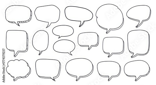 speech, bubble, thought, chat, dialogue, conversation, message, idea, communication, talk, quote, comment, thinking, vignetting, hand, drawn, doodle, outline, shape, graphic, design, element, icon, symbol, web, app, presentation, template, storytelling, creative, empty, blank, various, shape, different, style, collection, set, pack, text, box