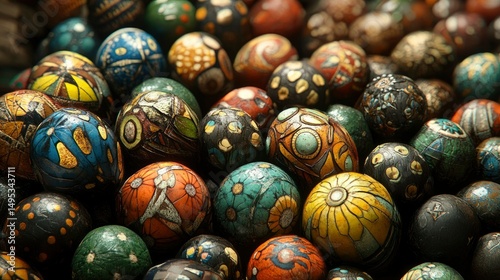 Collection of Hand-Painted Decorative Eggs, Close-Up