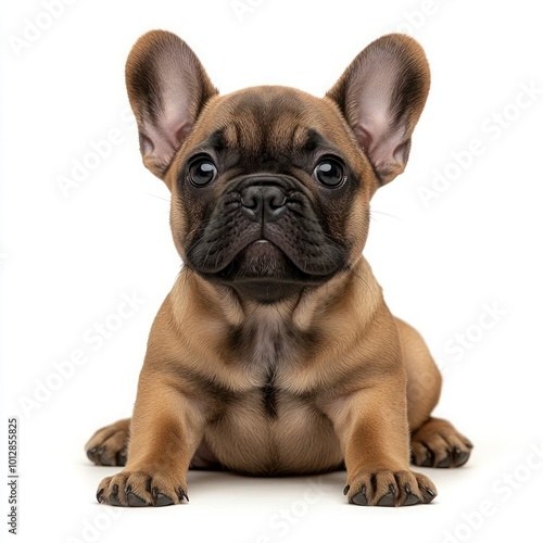 Collection of Happy Brown French Bulldogs: Lying, Sitting, Standing, and Isolated on White Background