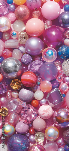 sphere, gemstone, pink, purple, iridescent, shiny, glossy, closeup, collection, texture, variety, round, bubble, ball, crystal, jewellery, decorative, object, arrangement, surface, background, gem, bead, marble, glistering, shimmer, reflecting, light, colours, marbled, striped, opaque, semitransparent