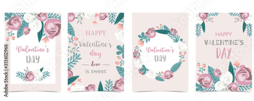 Collection of love background set with leaves,flower,rose.Editable vector illustration for Valentine’s day invitation,postcard and website banner