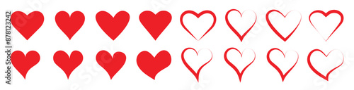 Collection of Love Heart Symbol Icons. Love Illustration Set with Solid and Outline Vector Hearts. Vector illustration.