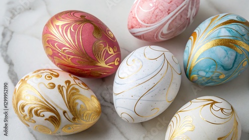 Collection of Marbled Easter Eggs with Elegant Gold and Silver Veins perfect for Easter home decor, elegant holiday celebrations, and creative DIY inspirations.