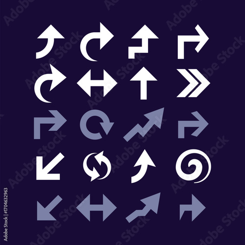 Collection of Modern Arrow Icons and Direction Symbols in Flat Minimalist Style Vector Set