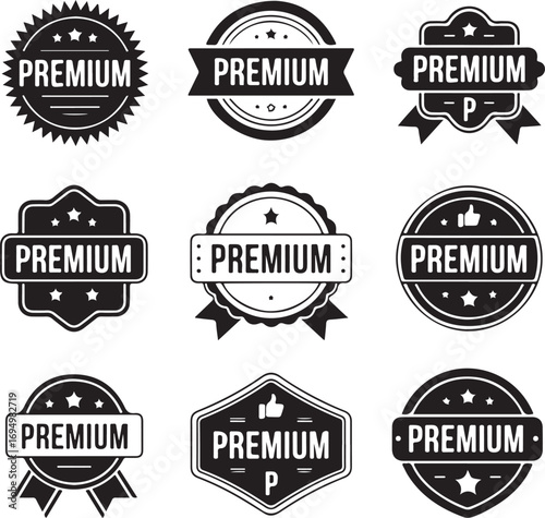 Collection of Nine Premium Badges Vector Illustration for Quality and Excellence