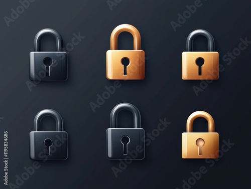 Collection of padlock icons in various colors representing security, privacy and protection concepts.