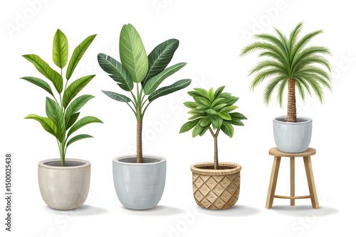 plant, potted plants, houseplant, green plant, foliage, pot, pot, palm tree, palm, bird of paradise, plumeria, frangipani, green leaf, home decor, interior design, digital artwork, white background, isolated, clipping path, hi-res, natural, organic, modern, minimalist, elegant, stylish, greenery, jungle, garden, nature