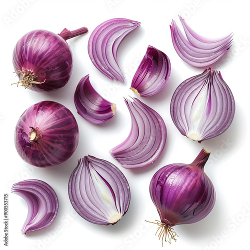 onion, vegetable, food, ingredient, isolated, fresh, organic, spice, white, background, bulb, closeup, healthy, ripe, group, raw, half, vegetarian, slice, cut, sliced, yellow, natural, seasoning, root, cooking, culinary, object, peel, whole, red, diet, gold, piece, vitamin, set, white background, grocery, studio, nobody, shallot, spring, unpeeled, clipping path, herb, collection, green, leaf, agriculture