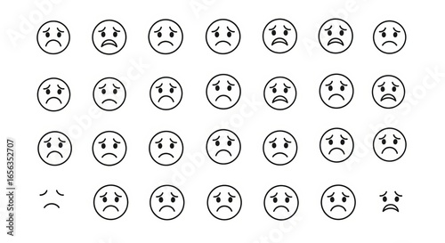 Collection of sad and unhappy smiley faces, representing negative feedback or low customer satisfaction.