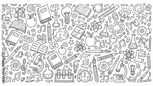 education, science, school, learning, cognition, study, book, reading, writing, art, music, chemistry, biology, physics, mathematic, technology, innovation, creativity, inspiration, idea, discovery, research, experiment, laboratory, microscope, beaker, flask, test tube, light bulb, apple, pen, crayons, brush, palette, note, staff, treble clef, gear, clock, brain, atom, molecular, deoxyribonucleic acid, earth, globe, telescope, magnifying glass, ruler, compass