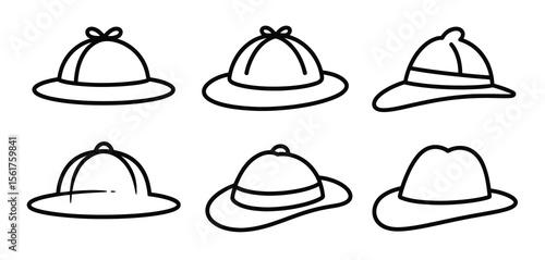 hat, sunhat, line art, vector, illustration, drawing, fashion, accessory, summer, travel, adventure, cartoon, graphic design, black-and-white, outline, simple, iconic, vintage, vignetting, design element, collection, style, headwear, bow, ribbon, design, clip art, children, children, education