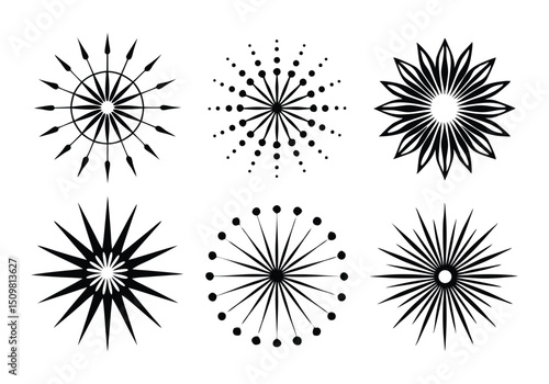 Collection of Six Abstract Geometric Sunburst Designs Vector Graphics