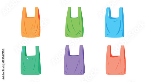 plastic, bag, shopping, retail, consumerism, waste, environment, pollution, grocery, market, store, trade, package, carrier, handle, set, collection, variety, colours, orange, green, blue, purple, red, cyan, vector, illustration, graphic, design, isolated, white background, symbol, icon, simple, flat, commerce, business, ecology, recycling, problem, consumption, material, shop, buy