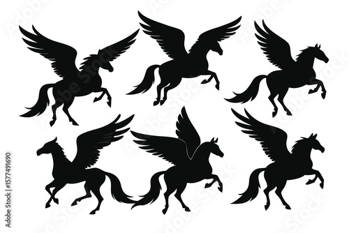 Collection of Six Majestic Pegasus Silhouettes Mythical Winged Horse Illustrations