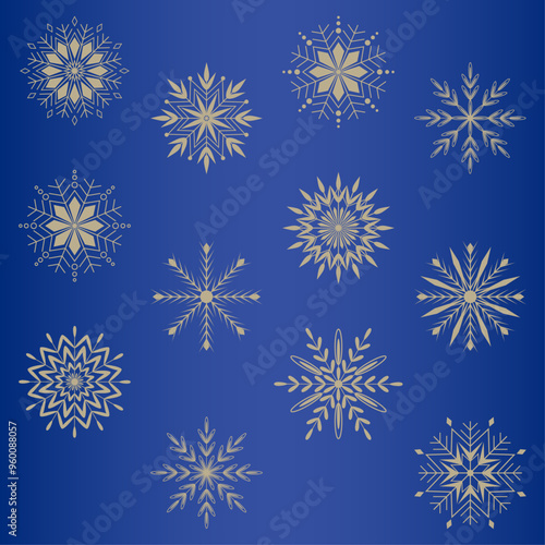 snowflake, winter, snowflake, vector, design, snow, christmas, ice, cold, holiday, decoration, set, illustration, christmas, season, flake, crystal, blue, celebration, symbol