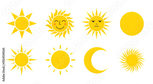 Collection of sun and moon icons isolated on transparent background