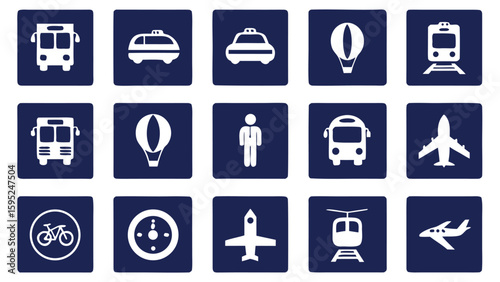 Collection of transportation icons on a dark blue background