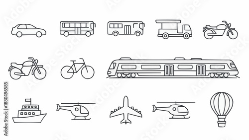 transport, vehicle, icon, set, collection, car, bus, train, motorcycle, bicycle, aeroplane, helicopter, ship, boat, air, land, sea, travel, journey, transportation, mobility, movement, speed, engine, wheel, wing, propeller, sail, icon, vector, art, simple, line, act, various, including, car, bus, train, motorcycle, bicycle, aeroplane, helicopter, ship, and, hot, balloon