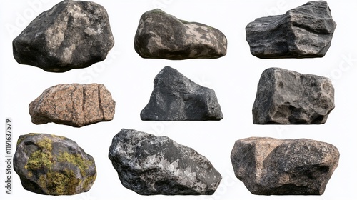 rock, stone, boulder, pebble, gravel, grey, black, brown, granite, basalt, marble, texture, surface, geology, mineral, nature, element, material, design, construction, landscape, background, isolated, white, collection, set, group, various, different, rough, smooth, hard, solid, natural, environment, object, item, detail, closeup, photo, image, illustration