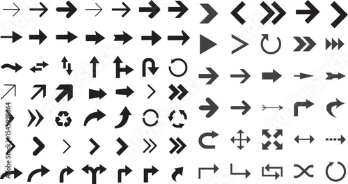 Collection of various black arrow icons in different styles for directional and navigation purposes