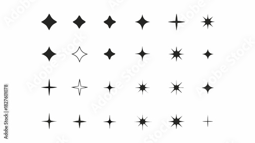 star, sparkle, icon, burst, shine, glistering, symbol, design, element, set, collection, graphic, illustration, abstract, shape, vector, isolated, white background, black, minimalist, simple, outline, filled, geometric, starburst, twinkle, celebration, magic, award, achievement, success, highlight, decoration