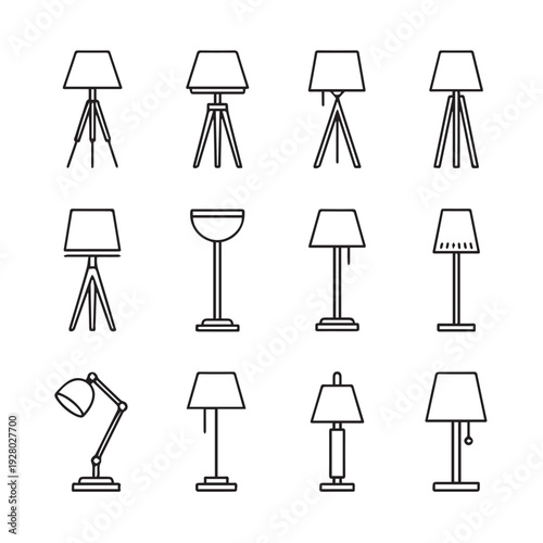 lamp, icon, set, collection, lighting, interior, design, element, modern, minimalist, vector, graphic, object, home, office, furniture, floor lamp, table lamp, desk lamp, decorative, simple, outline, line art, illustration, silhouette, abstract, clean, concept, drawing, editable, light, fixture, decor, style, contemporary, technology, energy, illumination, domestic, equipment