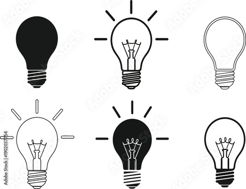 light bulb, bulb, icon, lamp, lighting, illustration, symbol, energy, electricity, idea, innovation, creativity, design, graphic, element, signs, shape, logotype, emblem, silhouette, outline, simple, detailed, vector, power, business, invention