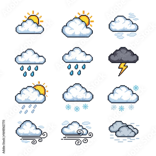 collection, various, weather, icon, including, sun, cloud, rain, snow, wind, white, background, image, illustration, signs, symbol, graphic, clip art, element, forecast, graphic, stormy, meteorology, thunderstorm, windy, isolated, pictogram, set, art, minimalist, rainy, digital, blue, vector, design, pictogram, cloudy, snowy, colourful, simple, sunny, flat
