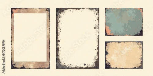Collection of Vintage-Style Decorative Frames with Grunge Texture and Blank Space for Text or Images