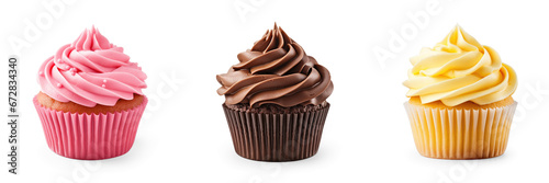 cupcake, chocolate, lemon, strawberry, cake, dessert, food, pasty, cream, icing, bakery, pastry, birthday, muffin, colours, red, yellow, semitransparent, shadow, transparent, collection, set, ai, art, generative