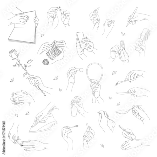 activity, book, brush, carcase, hot drink, collection, comb, contour, craft, cream, cup, draw, drink, earring, eat, finger, flower, fork, girl, graphic, group, hand, hobby, iron, knife, knit up, knitting needle, lady, line, lipstick, logotype, make-up, mirror, modern, needle, paint, pen, person, phone, read, set, sew, sewing, vignetting, spoon, sticker, thread, vector, woman