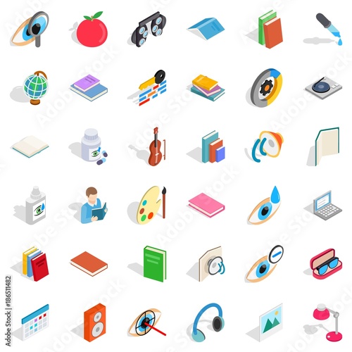 college, icon, isometric, vector, illustration, set, collection, signs, object, logotype, symbol, isolated, 36, three-dimensional, eye, medicine, earphones, educate, student, training, learn, school, graduate, university, cognition, classroom, test, higher, read, fiddle, music, book, code, apple, person, paper, writing, reading, globe, seminar, education, graduation, studying