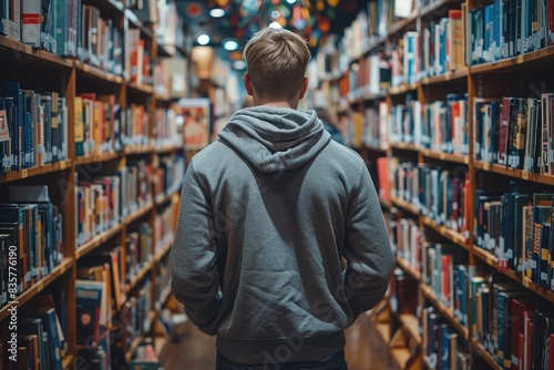 student, library, study, reading, bookcase, bookshop, stack, bookshelf, college, book, class, university, ai, generated, professional, photo