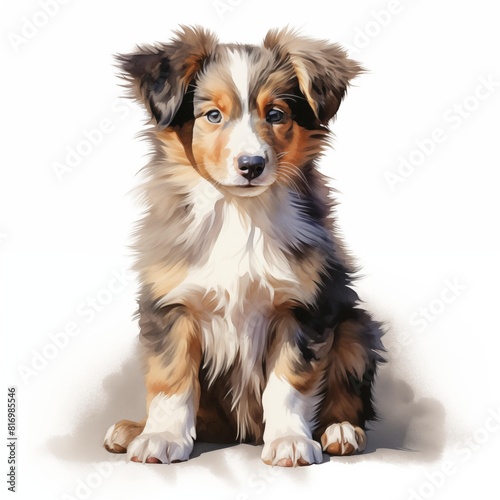 Collie. Puppy dog. Smooth collie clipart. Watercolor illustration. Generative AI. Detailed illustration.