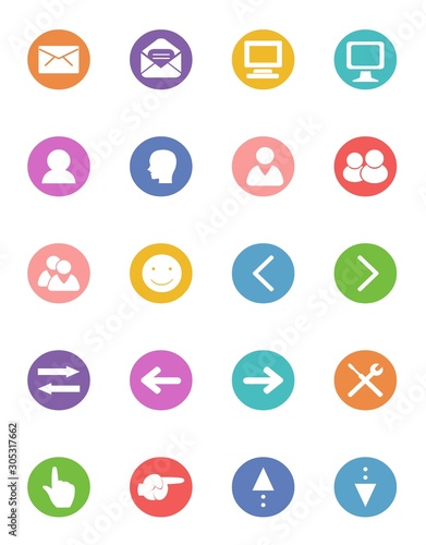 icon, pictogram, interface, set, series, symbol, illustration, vector, art, clip art, artwork, graphic, simplicity, signs, shape, presentation, publishing, mail, mailbox, letter, envelope, monitor, computer, person, head, upper body, smile, arrow, front, back, left, right, tool, screwdriver, display, pointing, up, down, buttons