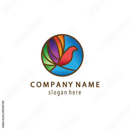 colored glass logo illustration of a bird with circle outline design vector