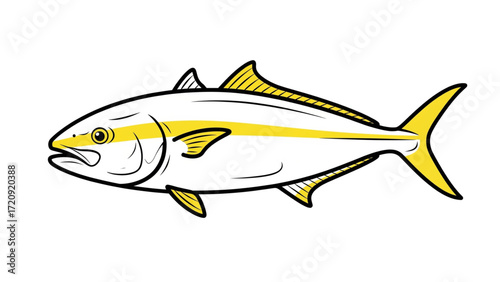 Colored illustration of a yellowstripe fish with fins and tail isolated on white background, detailed hand-drawn marine life artwork