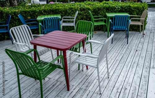 coloured, plastic, table, chair, outside, chair, furniture, cafes, decoration, design, eatery, nobody, old, outdoors, style, yellow, empty, sidewalk, urban, interior, colourful, colours, seat, abandoned, blue, bright, broken, bush, decor, eat, european, grass, lifestyle, metal, moss, orange, red, rundown, synthetic, bar, exterior, modern, new, polish, set, terrace, unhygienic, armchair