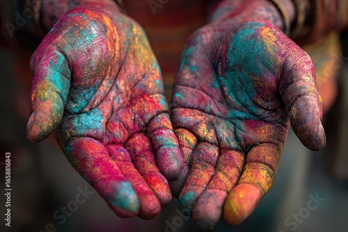 Colored powder on palms