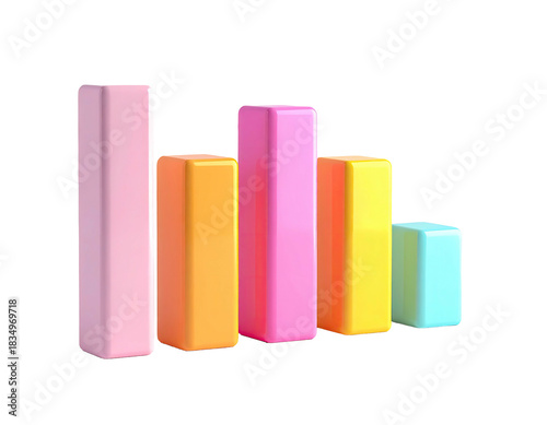 graph, chart, bar, column, three-dimensional, infographic, datum, statistic, presentation, analysis, diagram, business, growth, decayed, trend, report, visual, illustration, information, pink, orange, yellow, blue, pastel, colours, block, rendering, modern, abstract, design, finance, marketing, success, bankruptcy, rise, fall, upward, downward, positive, negative, financial, progress, communication, representation, element, icon, symbol, concept, glossy
