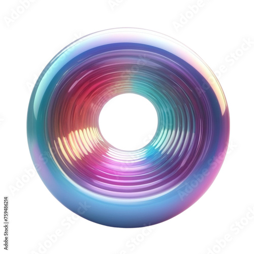 colorful 3d holographic glass torus with cylinder on Isolated transparent background png. generated with AI