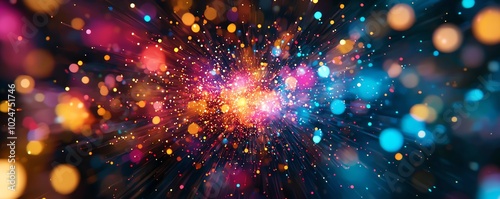 Colorful abstract background with bright, glowing bokeh lights and vibrant energy effects.