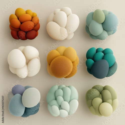 Colorful abstract blobs, studio shot, neutral background, design elements