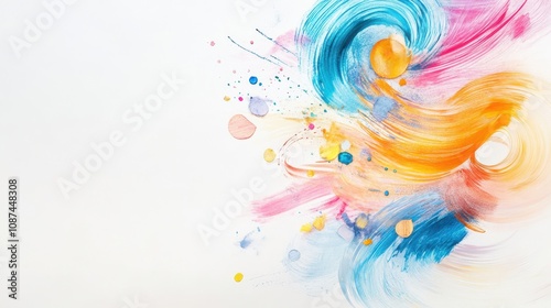 Colorful abstract brush strokes of blue, pink, and orange on a white background, conveying movement and creativity.