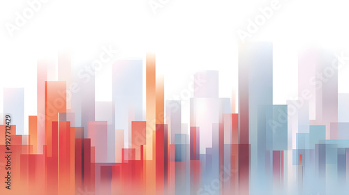 city landscape, building, skyscraper, colourful, abstract, urban, shape, orange, red, blue, white, light, modern, geometric, design, background, artistic, contemporary, structure