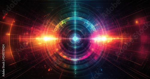 Colorful Abstract Digital Background with Circular Pattern and Radiating Light Effects for Creative Projects and Online Media