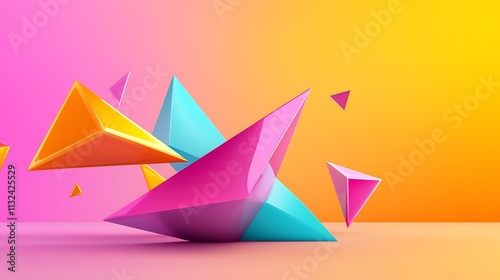Colorful abstract geometric shapes on gradient background.