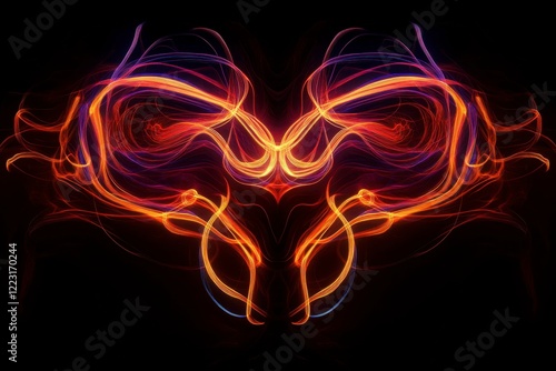 Colorful Abstract Light Trails Creating Symmetrical Heart Shape