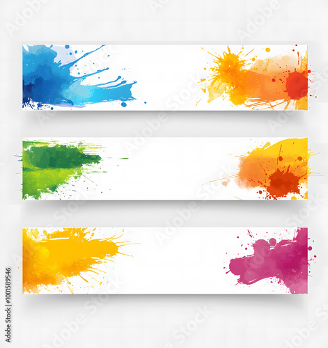 Colorful Abstract Paint Splashes Banners Set
