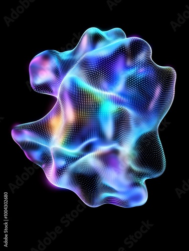 Colorful abstract shape with flowing patterns, set against a black background, ideal for modern design projects. A minimalist poster in metallic and chrome gradient style.